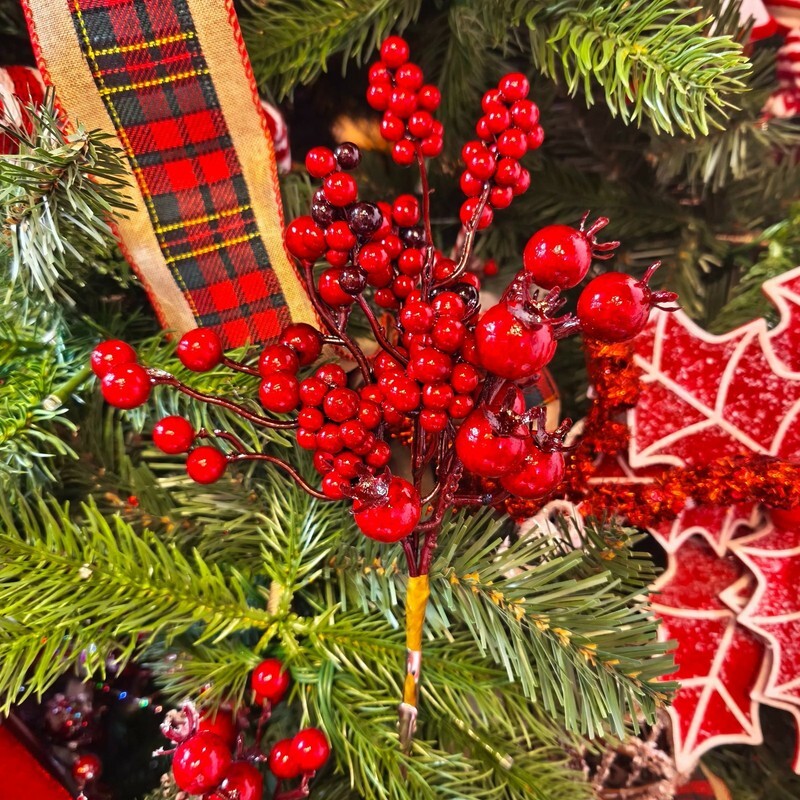 Holiday Time Plastic Berries Decorative Christmas Clip, Red, 6" Includes a mix of round and pomegranate-style berries Glossy red finish adds shine and richness Clip backing offers secure and easy placement Measures 6 inches tall for compact decorating Great for wreaths, trees, garlands, or tabletop displays