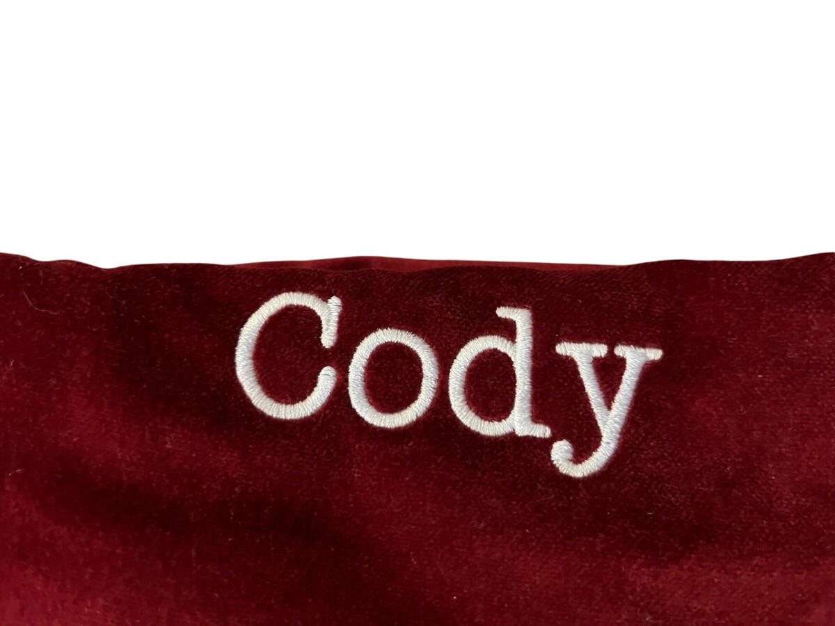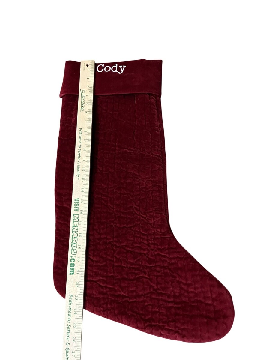Pottery Barn Large Velvet Quilted Christmas Stocking ? Personalized ?Cody? ? Red