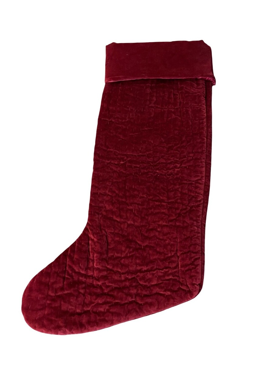Classic and timeless, this Pottery Barn quilted velvet stocking brings luxurious texture and rich holiday color to your seasonal decor. Crafted with quality materials and elegant detailing, it?s perfect for creating a warm, traditional Christmas look by the fireplace or on a stair rail.