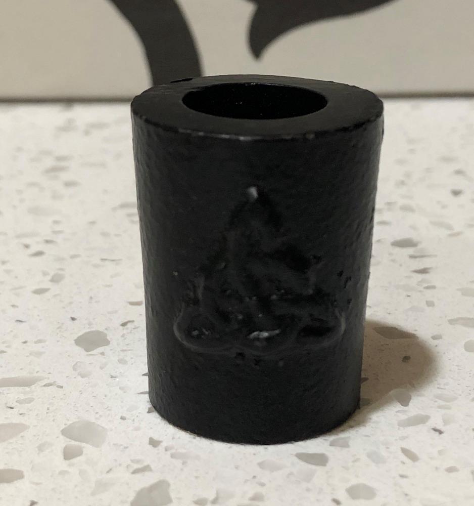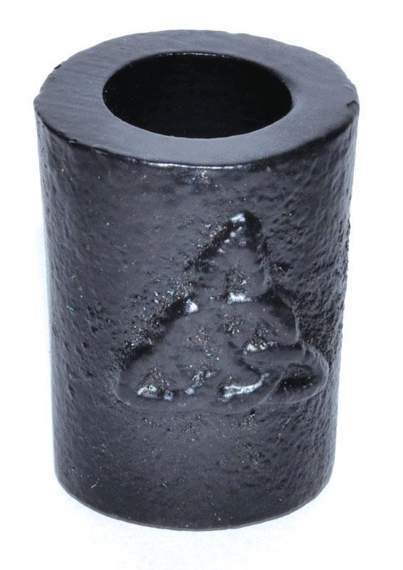 Solid cast iron chime candle holder with a triquetra on one side. Nice heavy safe way to burn your chime (mini) candles. 1.25 inches tall with a 1 inch diameter base.