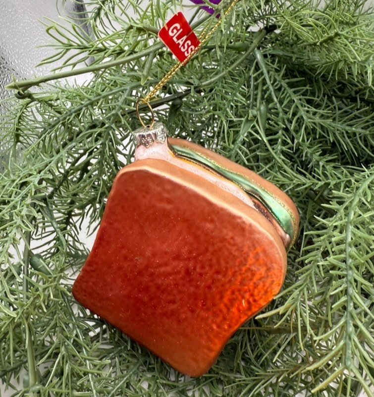 Glass Cheeseburger Ornaments Set of 3 Handcrafted Patty Melt Food Christmas Deco