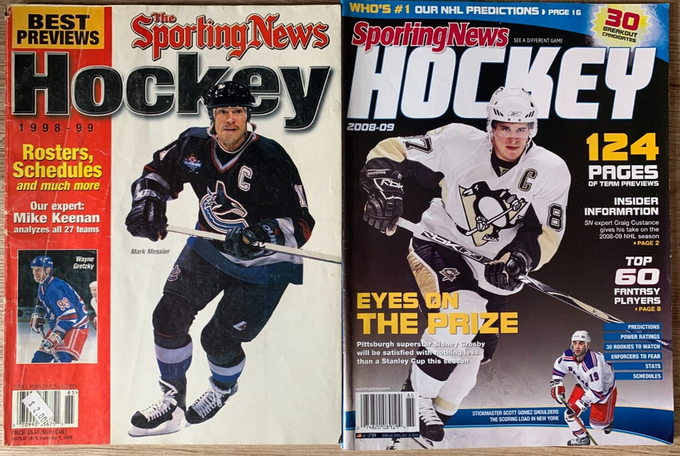 The Sporting News Hockey Yearbook 2 Piece Lot, 1998, 2008, Crosby, Messier, NHL
