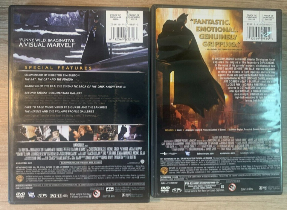 Batman 2 Piece DVD Lot: Batman Returns, Batman Begins, Cat Woman, The Joker