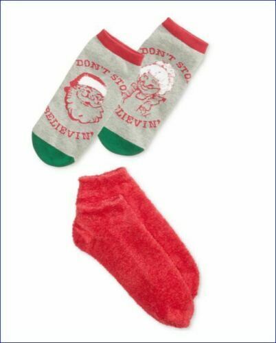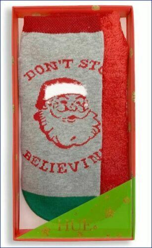 Nwt HUE 2-pack Footsie Calze Regalo Babbo Natale Vacanza