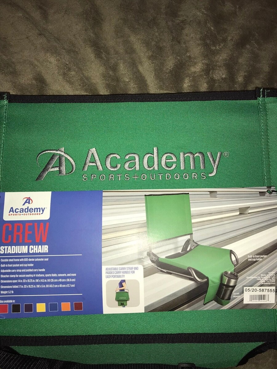 This green crew stadium chair from Academy Sports is the perfect addition to your outdoor sports gear. Its durable design ensures that it can withstand hours of use without breaking down. The chair is made from high-quality materials and features a comfortable seat and backrest.