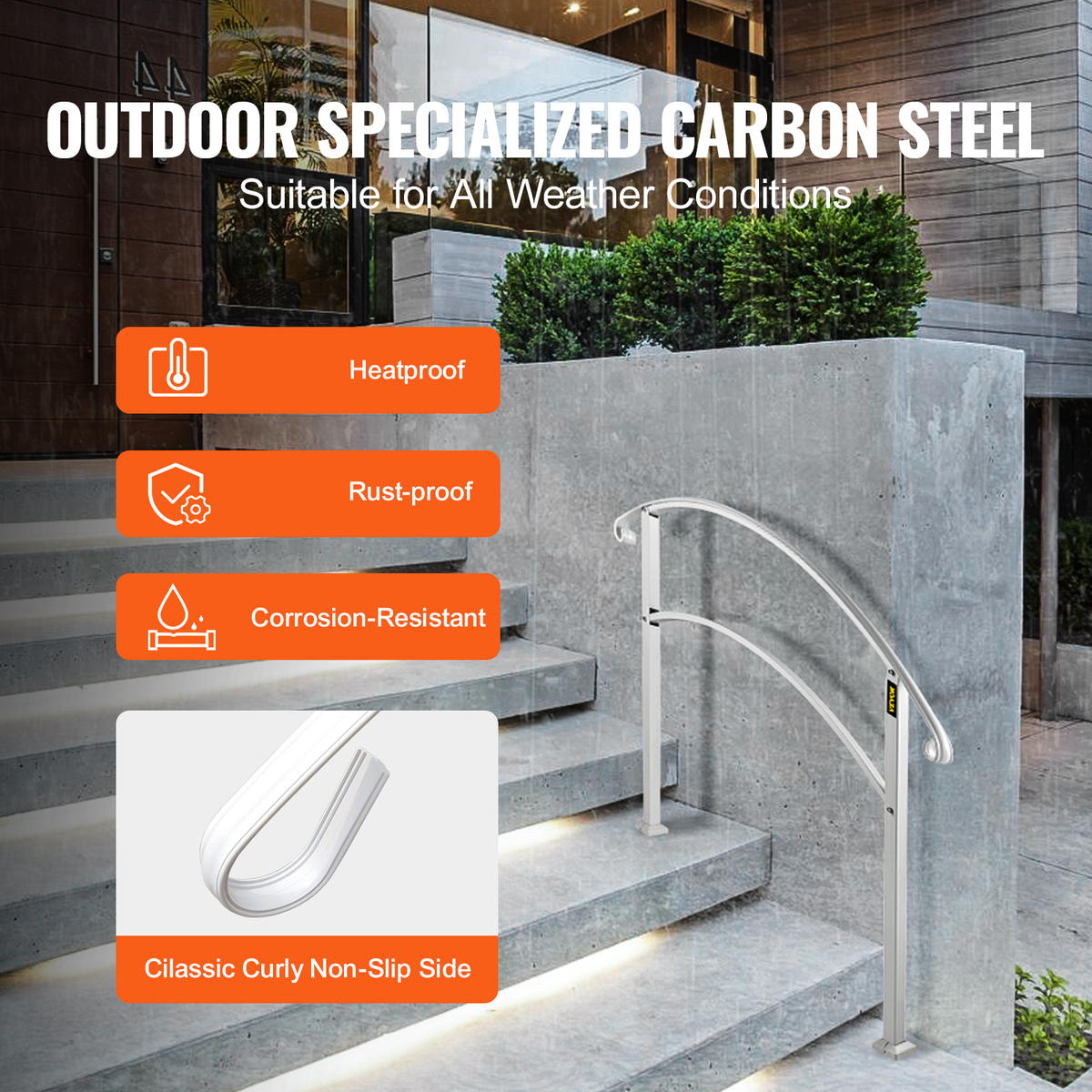 Extensive Application: The railing for steps provides extra security for the elderly, children, pregnant, disabled family members, and people after surgery. It can be installed on concrete, brick, and wood steps of porches, balconies, gardens, residential buildings, hotels, garages, etc. This outdoor railing is ideal for places where you cannot attach to a wall or structure.