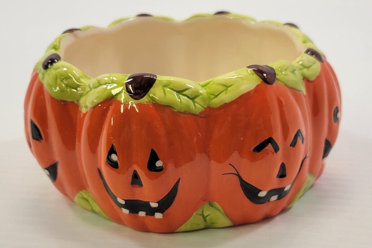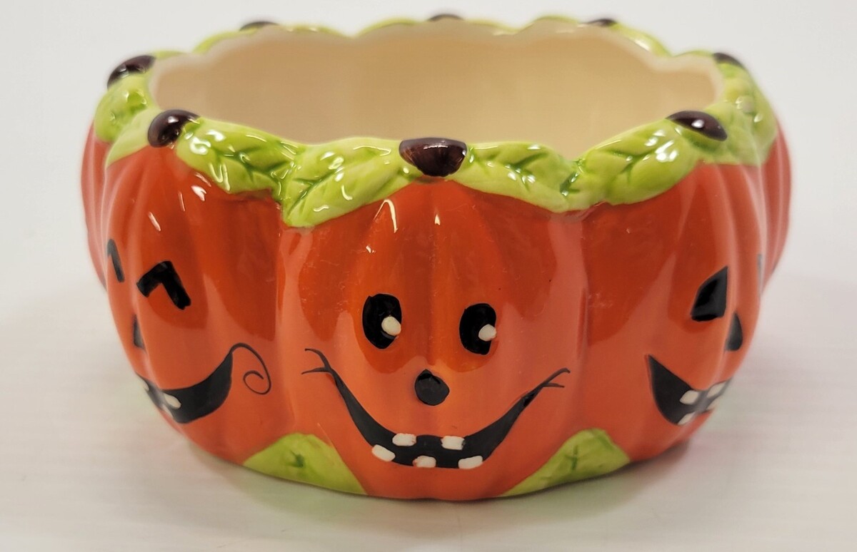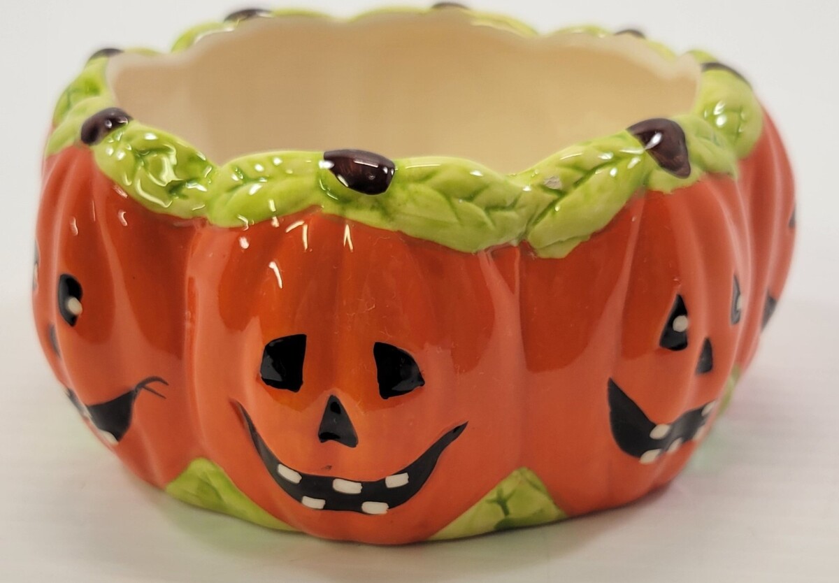 Royal Norfolk Ceramic Pumpkin Jack-O-Lantern Halloween Candy Dish Bowl