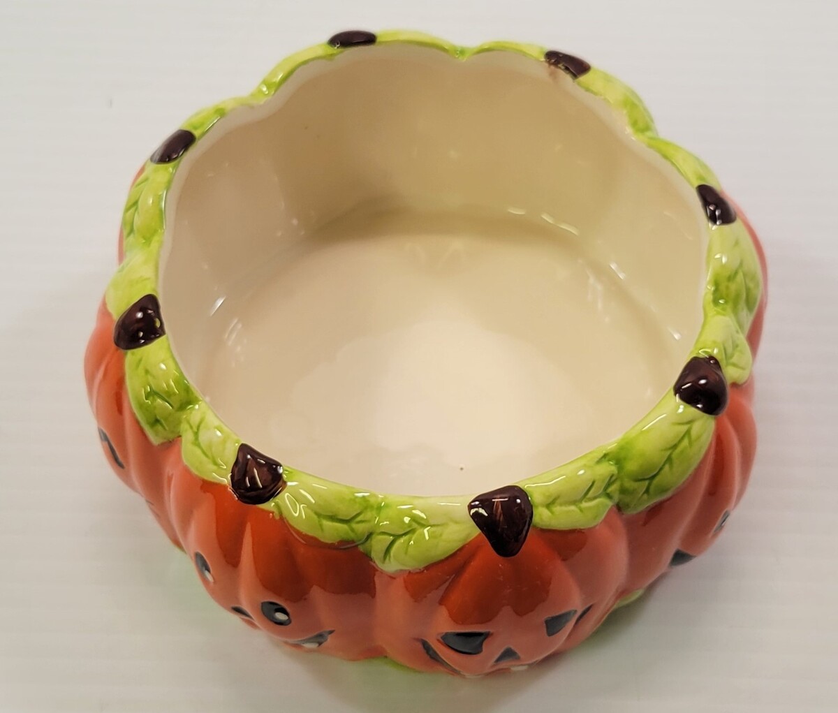 E) Royal Norfolk Ceramic Pumpkin Jack-O-Lantern Halloween Candy Dish Bowl