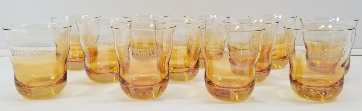 P) Rare Vintage Set of 12 Amber Disaronno Amaretto Liqueur Glasses