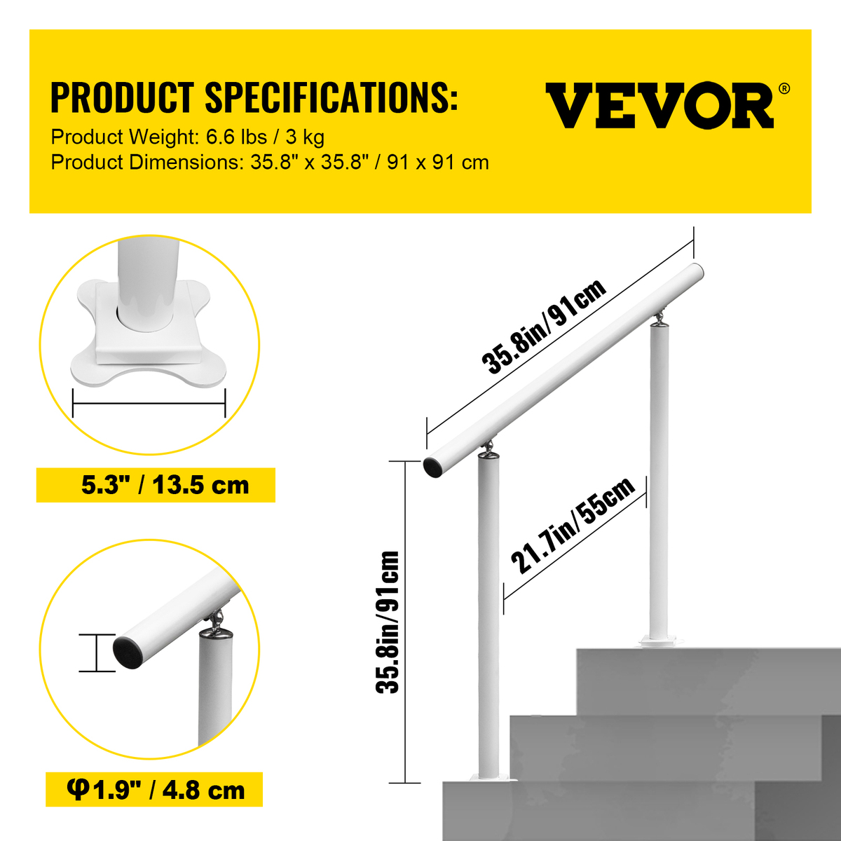 VEVOR Aluminum Outdoor Stair Railing Kit, 3 ft Handrails 1 to 3 Steps, White