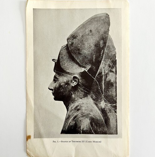 1942 Egypt Thutmose III Statue Historical Print Antique Ephemera 8x5