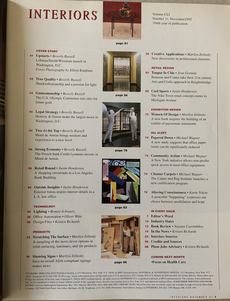 Interiors Magazine November 1992 The Upstarts and 50 similar items