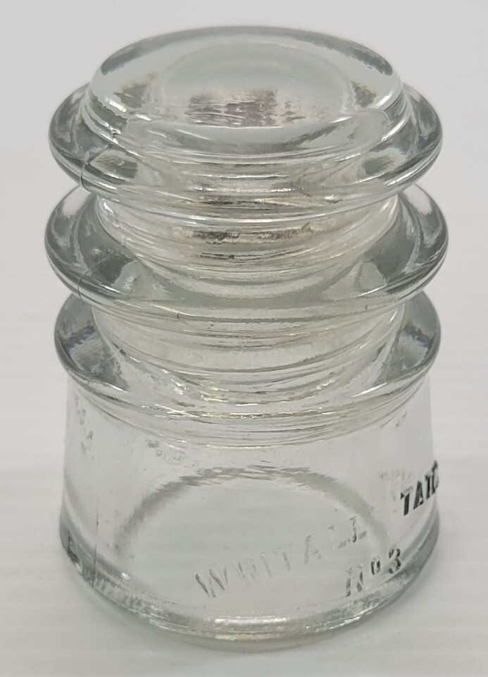 FF) Vintage Whitall Tatum No. 3 Wire Insulator Clear Glass 3" Tall