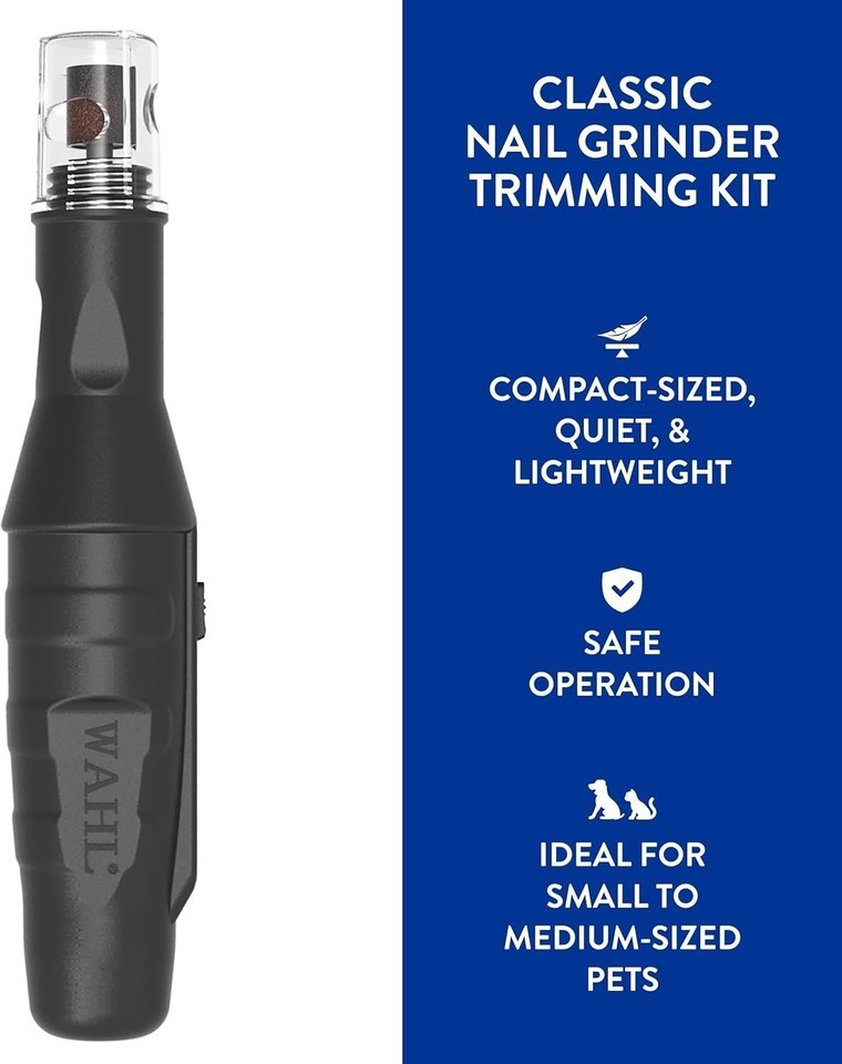 The Wahl 5971 Professional Pet Nail Grinder is engineered for pet owners seeking a safe, stress-free alternative to traditional nail clippers. Perfect for routine home grooming, it allows you to maintain your pet?s nail health between professional visits ? preventing overgrowth that can lead to discomfort, posture issues, or joint strain. The quiet operation and gentle grinding action make it especially suitable for anxious or skittish animals, while the safety features ensure confident, mistake-free trimming. Whether you have a tiny Chihuahua, a large Labrador, or a curious cat, this versatile kit adapts to any nail type ? delivering smooth, polished results with minimal effort. A smart, compassionate tool that keeps your pet?s paws in top condition, one gentle grind at a time.