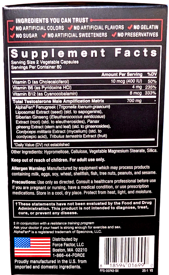 Force Factor Test X180 Legend Testosterone Booster Capsules 120 Count EXP 03/29