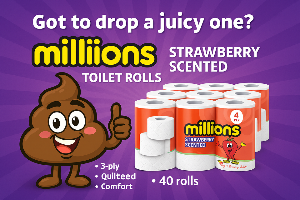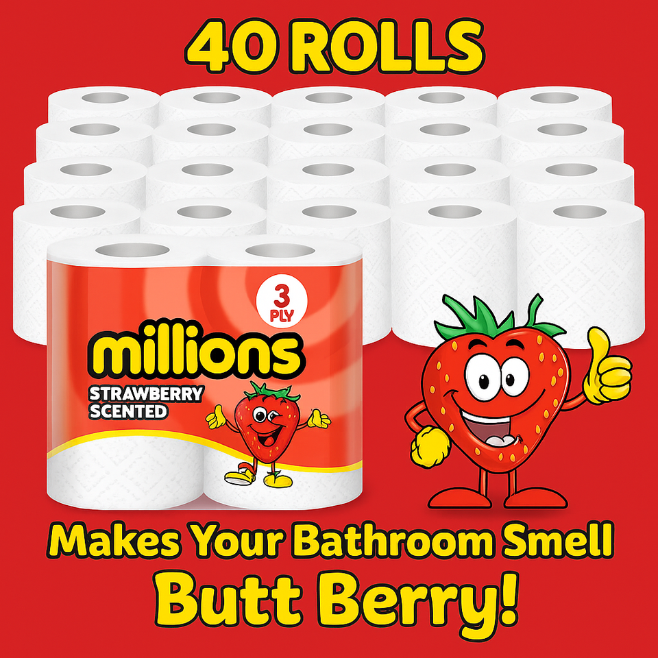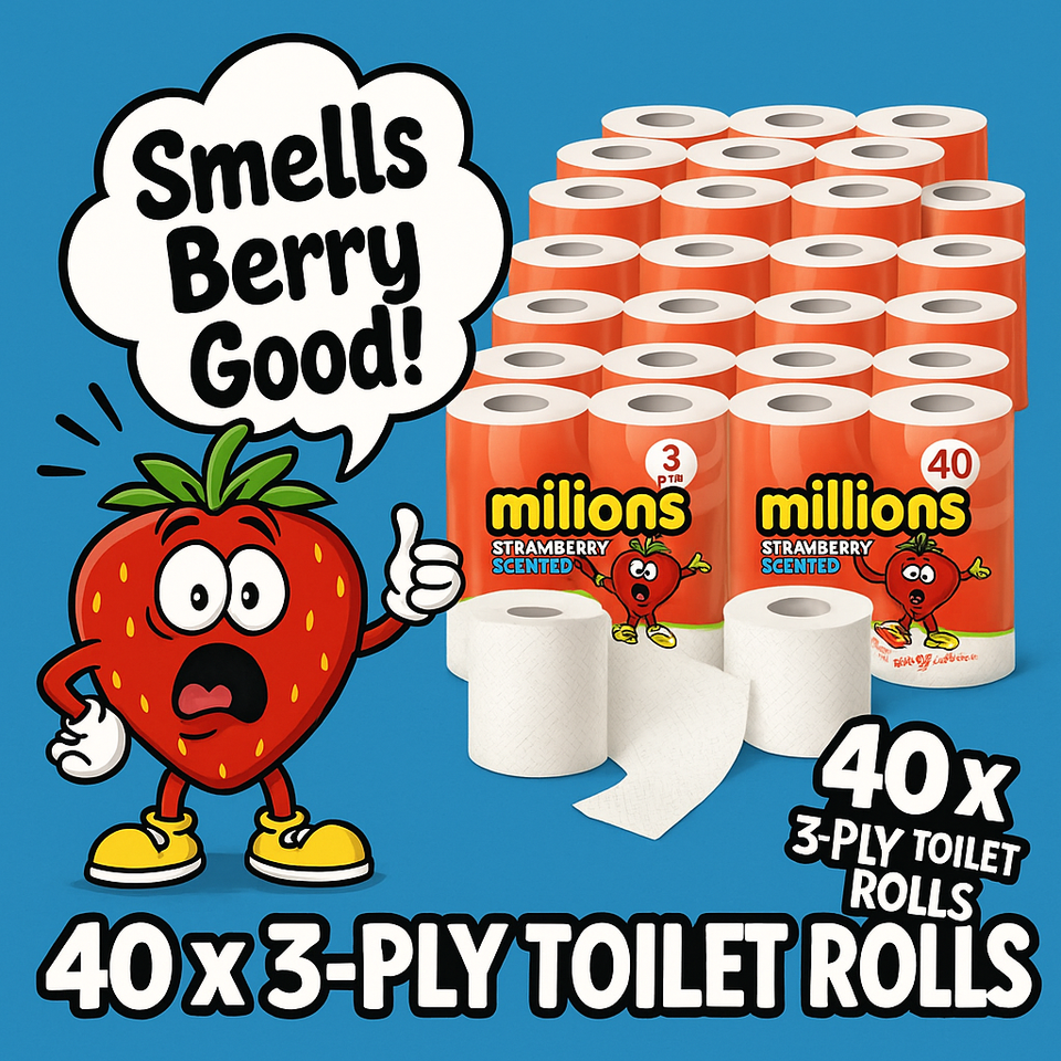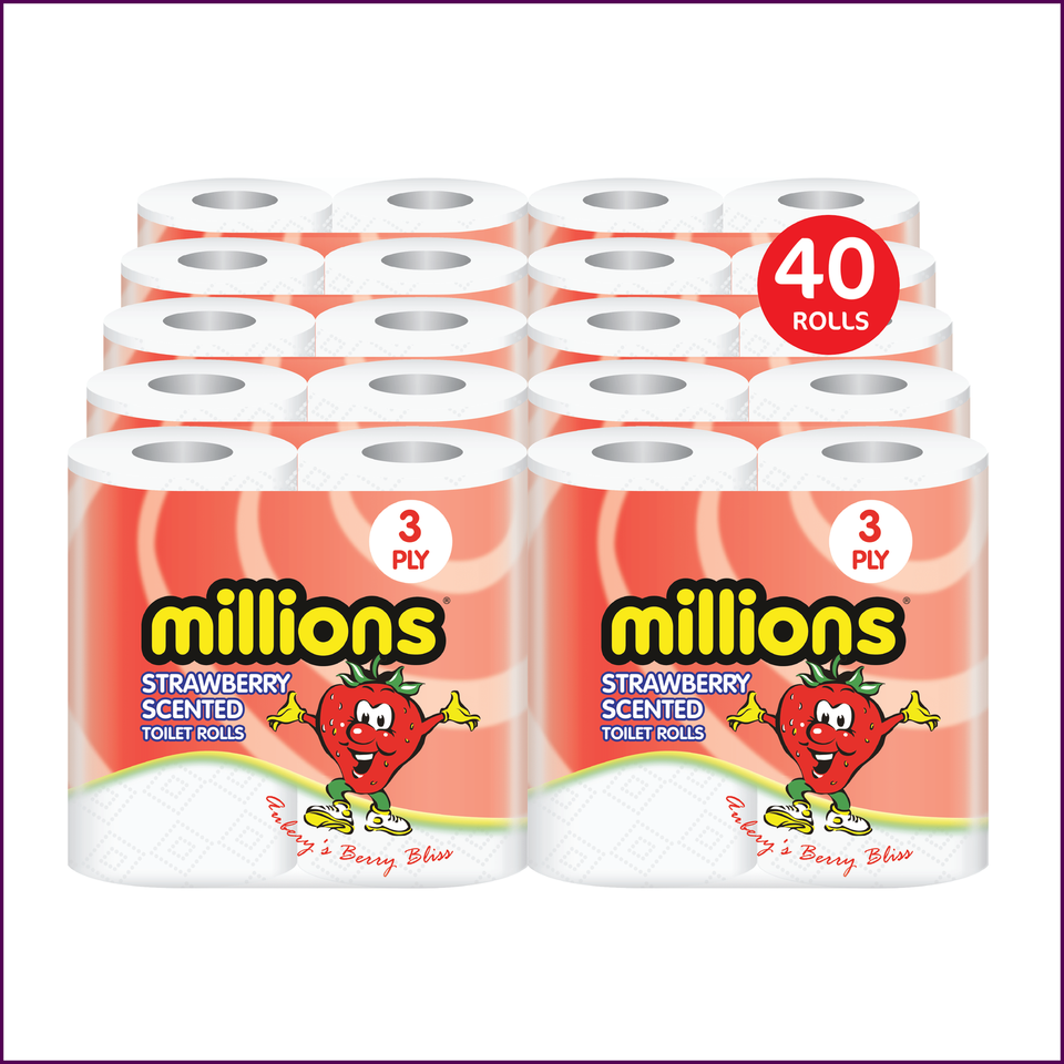 Millions Strawberry Scented 3 Ply Toilet Rolls 40 Pack | Soft Quilted Luxury