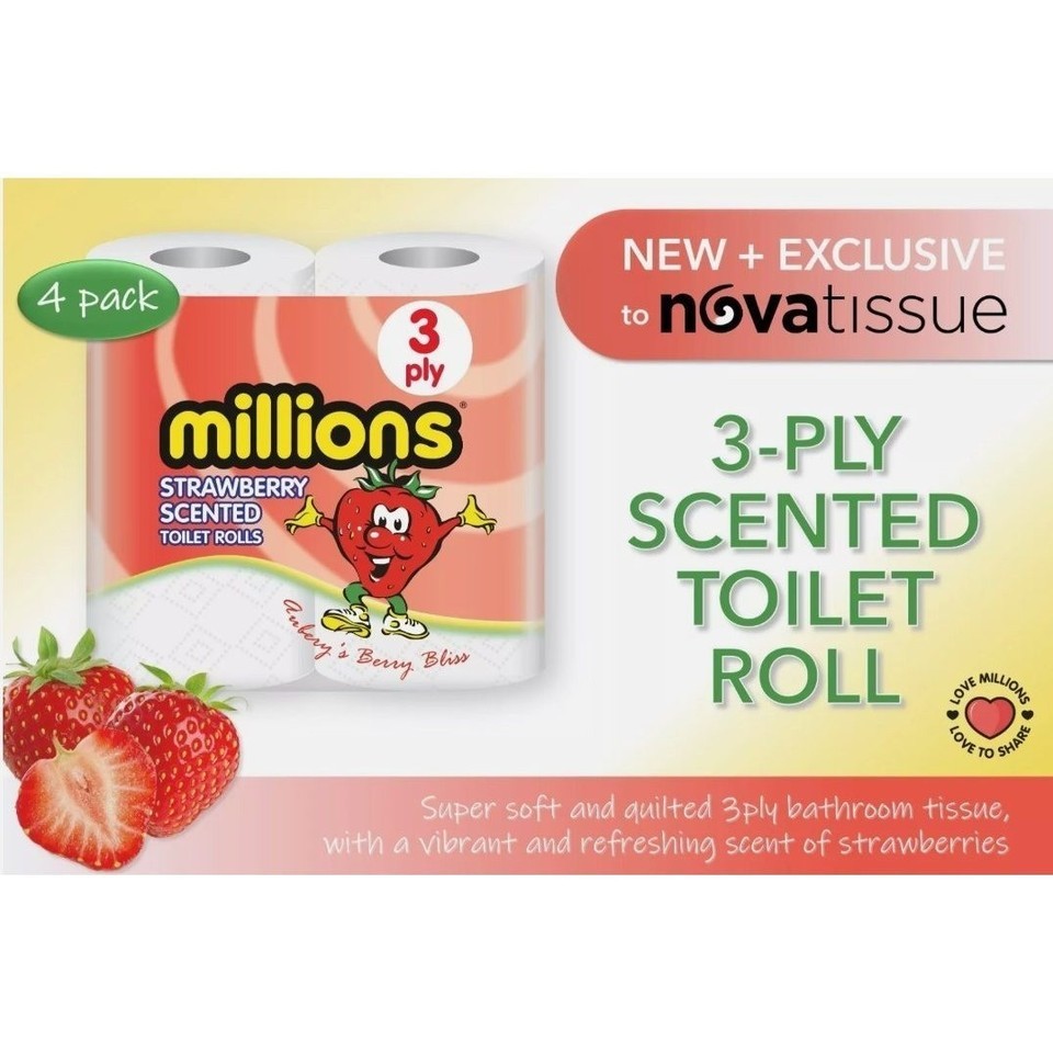 Millions Toilet Roll 3ply Strawberry Scented Soft Quilted Luxury Tissue Paper Strong soft 40 Rolls