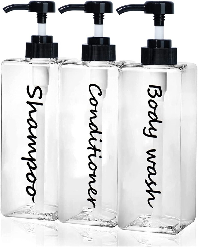 Unique Waterproof - Different from other pump bottles: Our shampoo pump dispenser with easy to read permanent, waterproof labels. Helping you identify shampoo, conditioner, and Body wash easily.