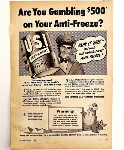 USI Permanent Anti-Freeze Advertisement 1953 and similar items