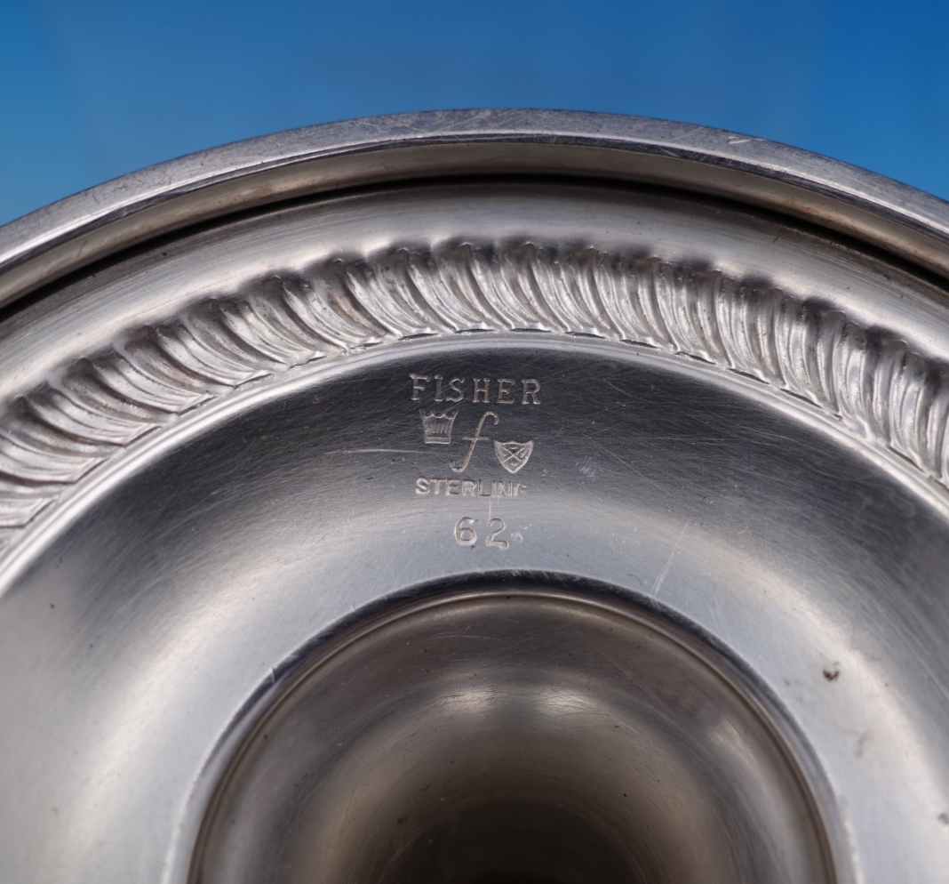 Wonderful Fisher sterling silver water goblet with a beautiful gadroon border on the base marked #62. This goblet measures 6 3/4" tall and weighs 5.3 troy ounces. It is not monogrammed and is in good estate condition as shown in the photos. Terrific!