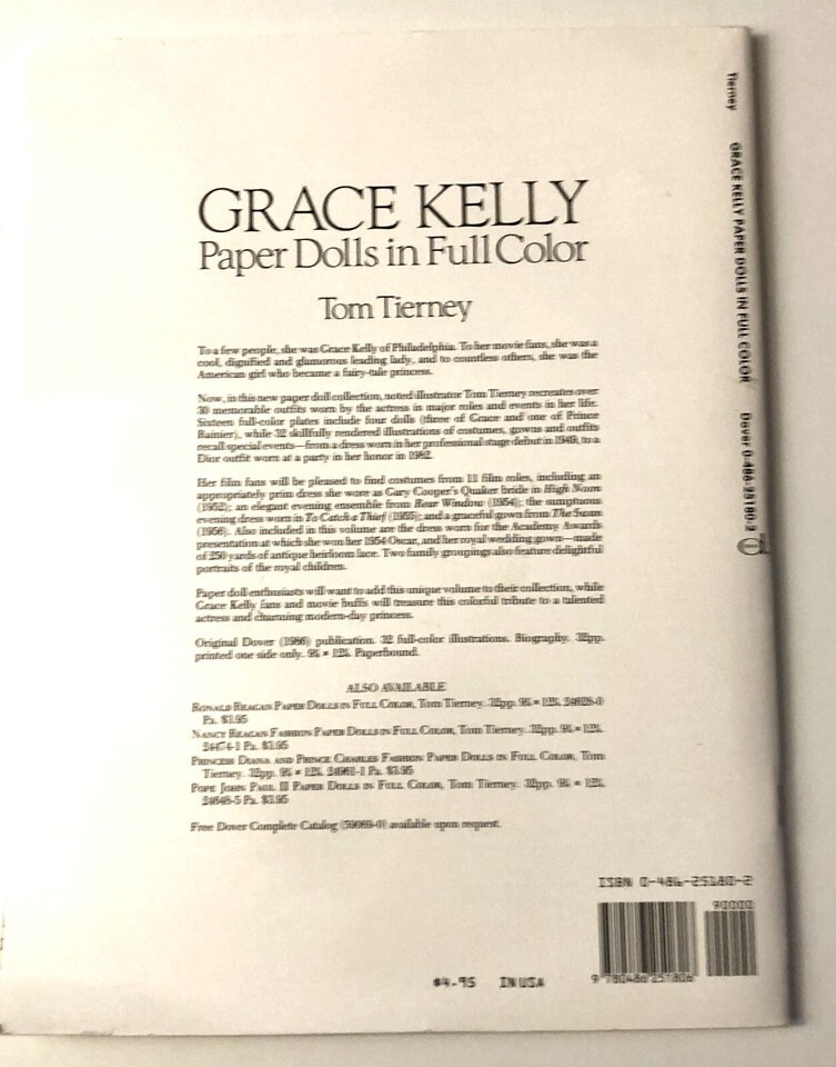 Grace Kelly Paper Dolls by Tom Tierney paper dolls by Tom Tierney. The book has not been used and may have a little wear on the cover, please review all photos for condition and be sure to check out our shop for more items. Calculated shipping is applied to cart when you purchase multiple items.