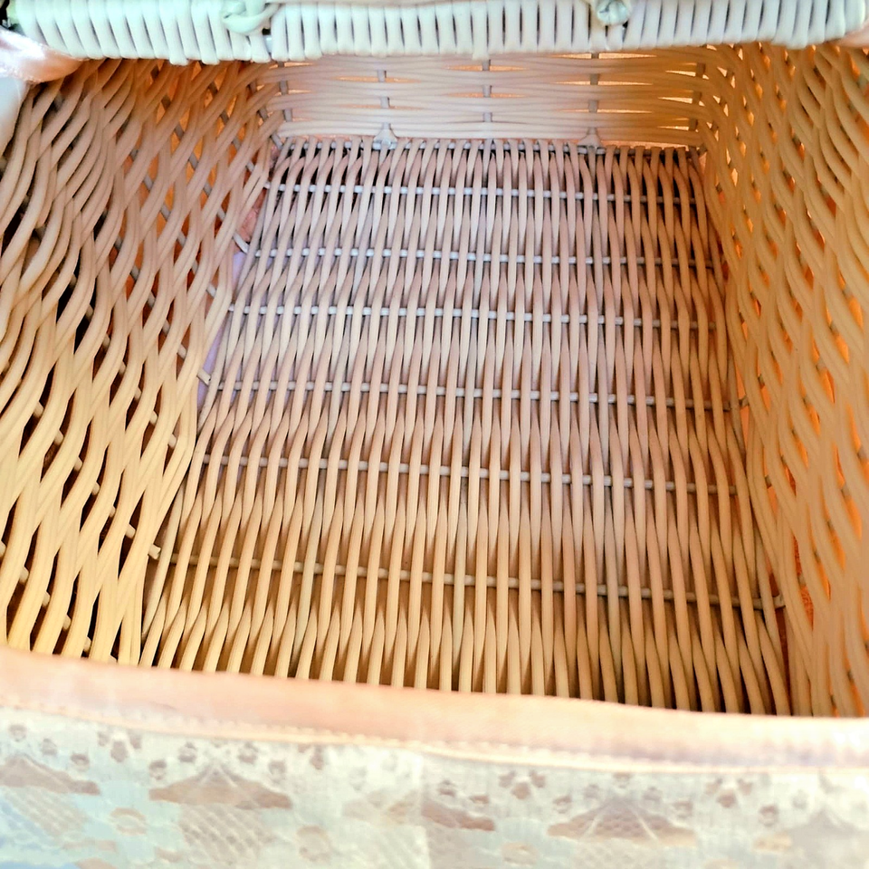 Vtg Wicker Sewing Picnic Basket Quilted Pink and similar items