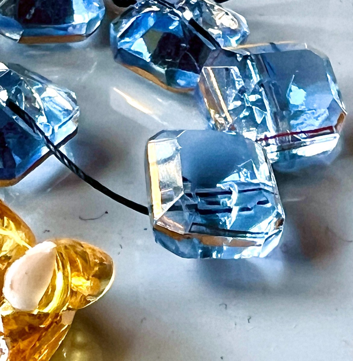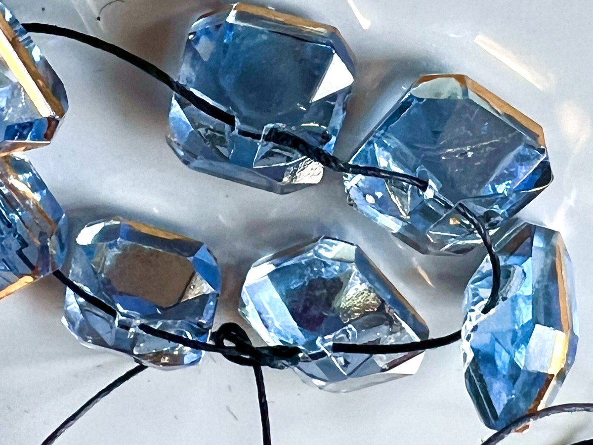 34 Antique Victorian Art Nouveau Blue Amber Diminutive Cut Glass Duck Buttons