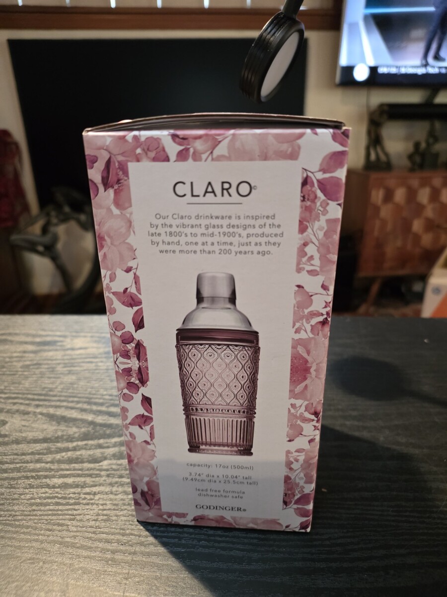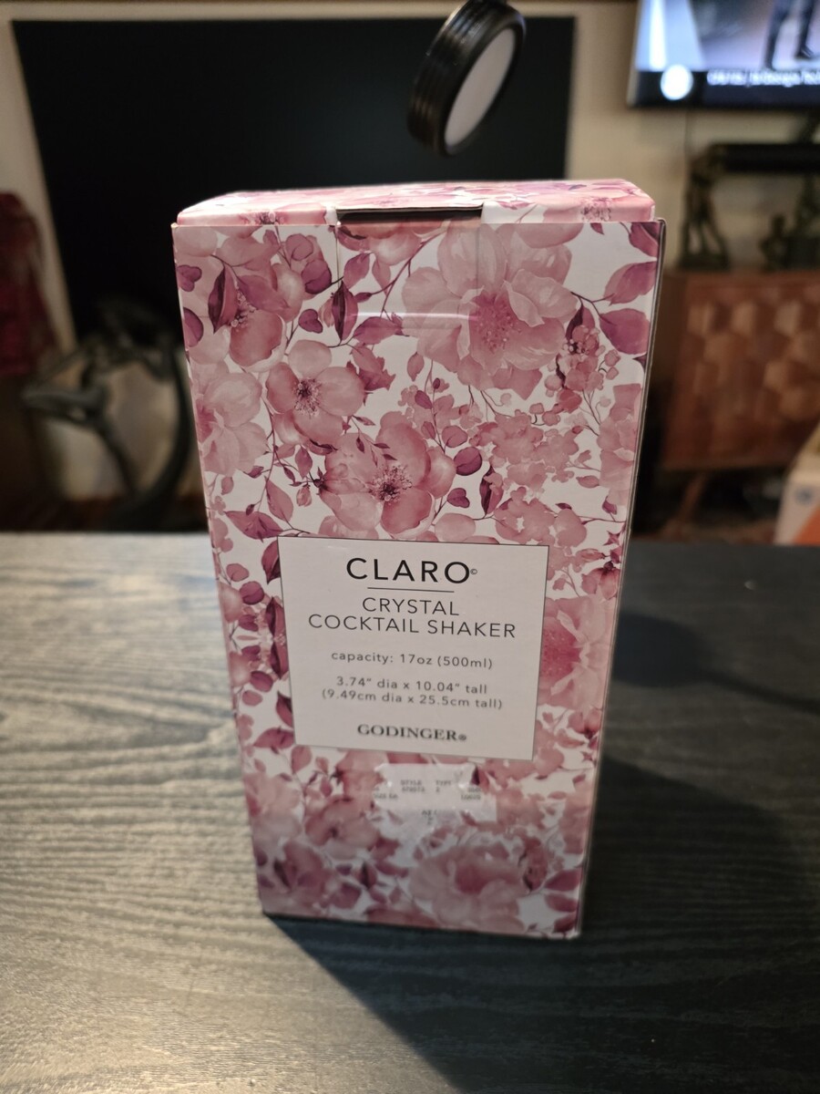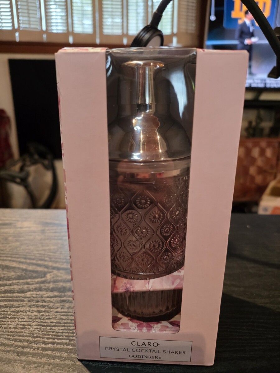 Godinger Claro Pink Crystal Cocktail Shaker New In box, 17 Oz.
