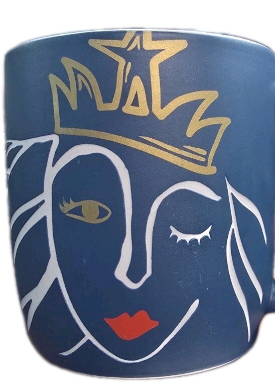 (1) Starbucks 2016 Mermaid Siren Logo Blue Gold Crown Coffee Cup Mug 14 oz
