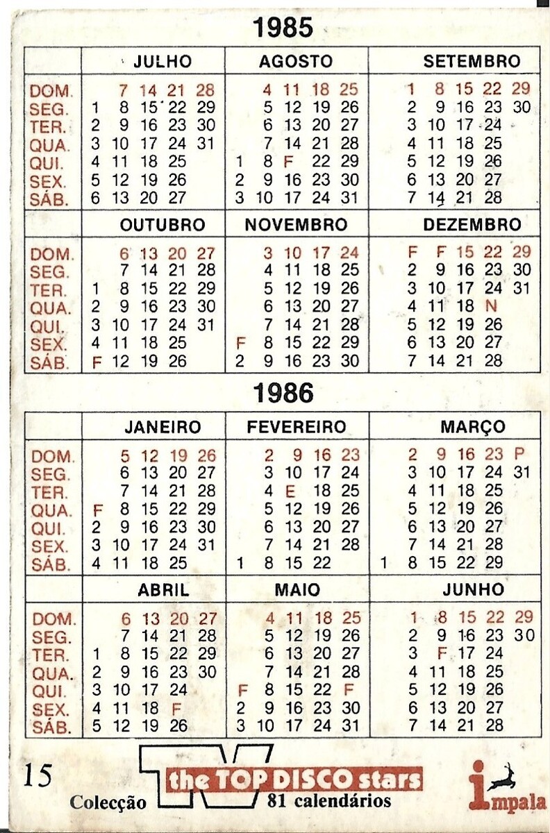 ⭕VTG card pocket calendar 1985 DIRE STRAITS Portugal group music singer
