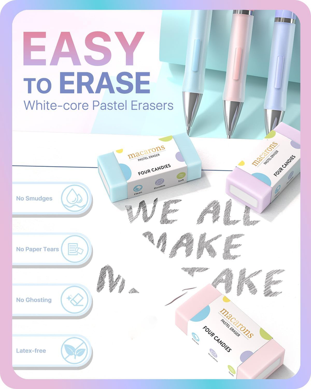 Smooth Erasing: This trio of pastel erasers makes removing marks easy; No smudges, no tears, and no ghosting; They?re also latex-free, ideal for all users