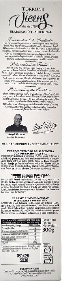 Made and packed by: Torrons Vicens, Agramunt, Lleida, Spain, since 1775