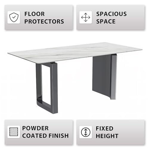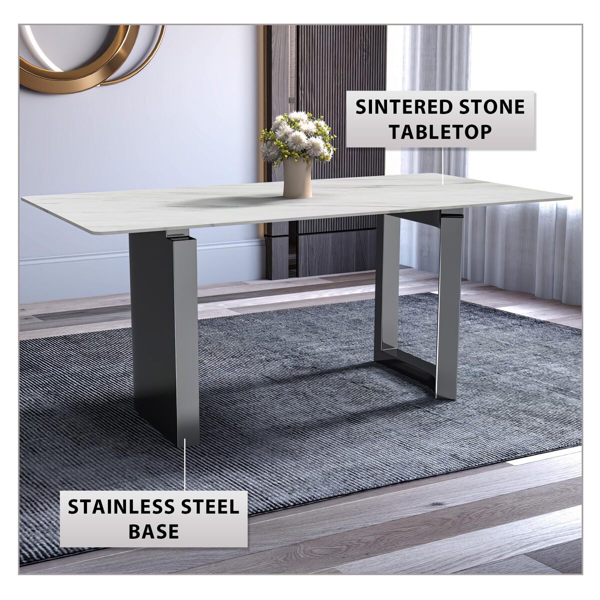LeisureMod Modern Rectangular 55 Dining Table with Sintered Stone/Glass Wide To