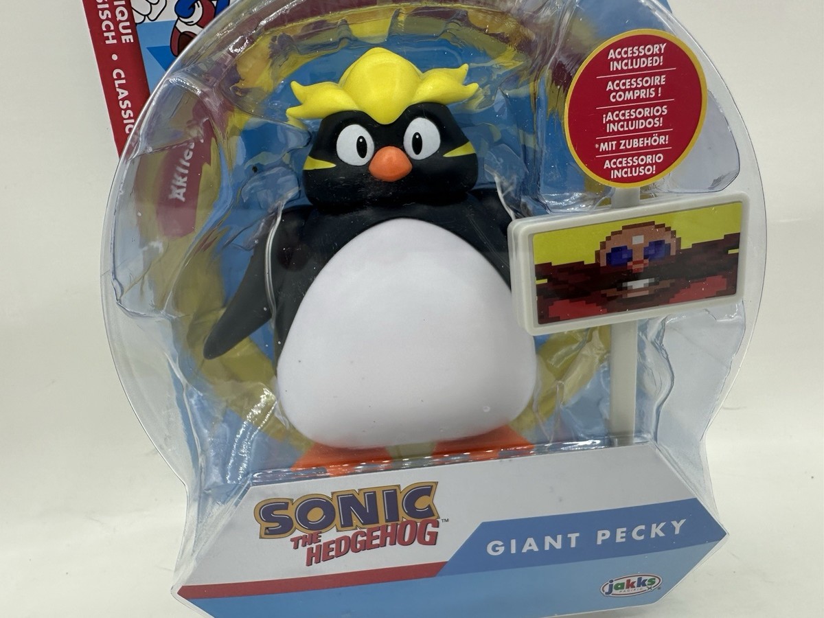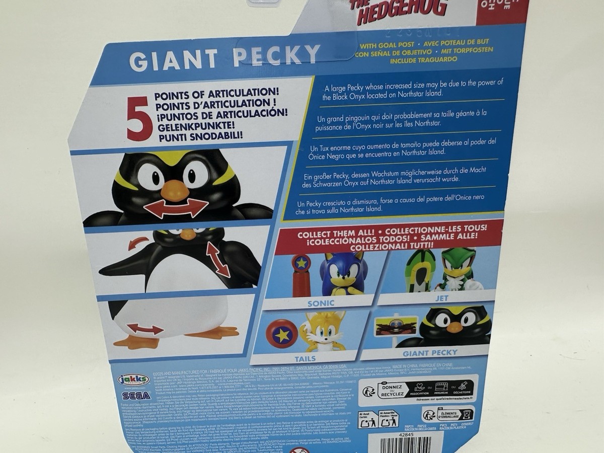 The Giant Pecky four-inch scale articulated figure is sure to be a hit with kids and Sonic fans! This authentic figure has articulated limbs and comes with a Classic Goal Post accessory.