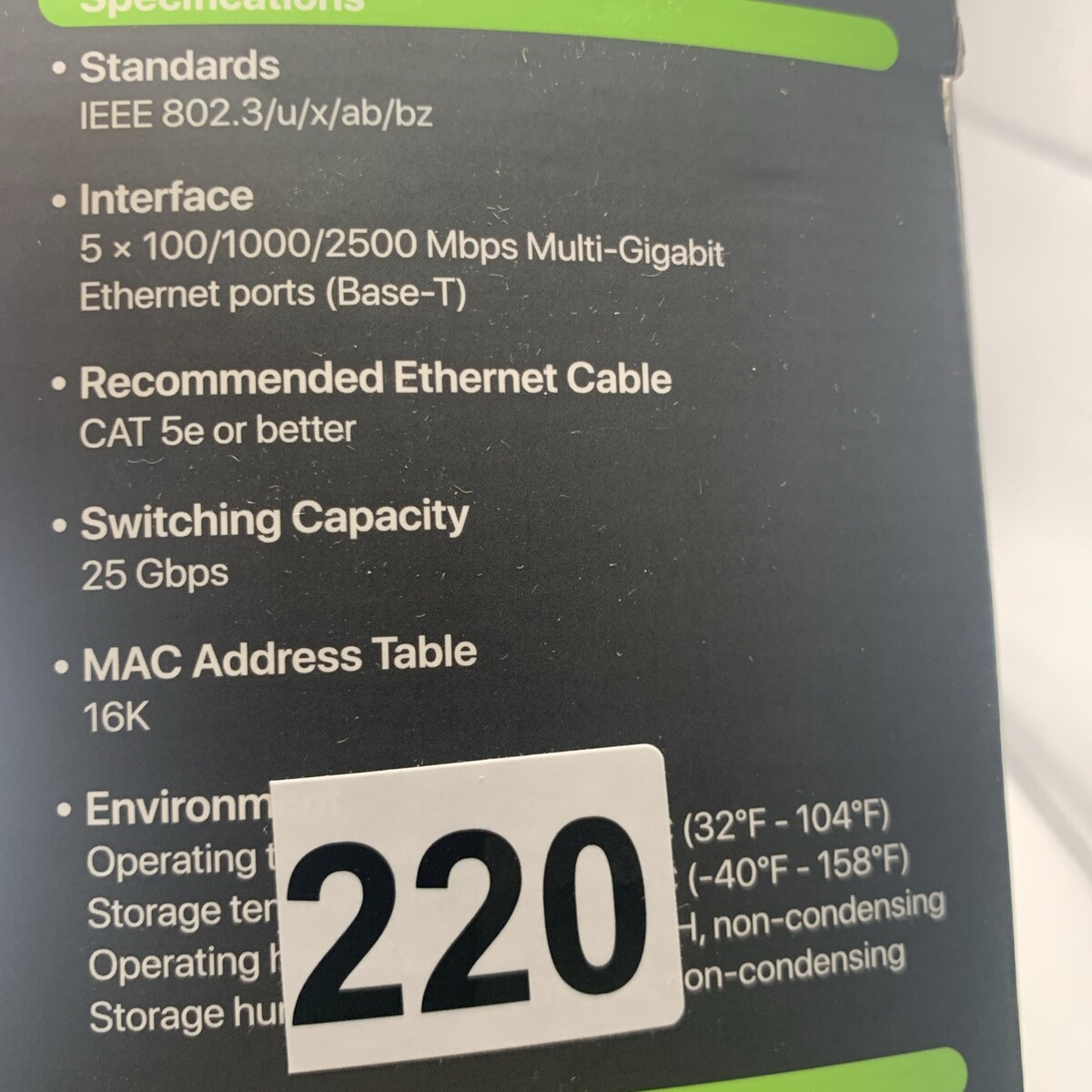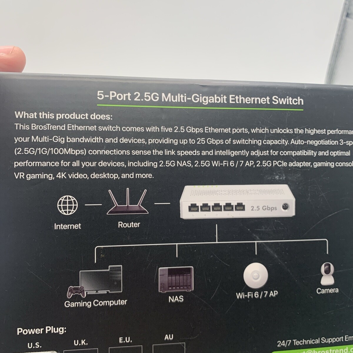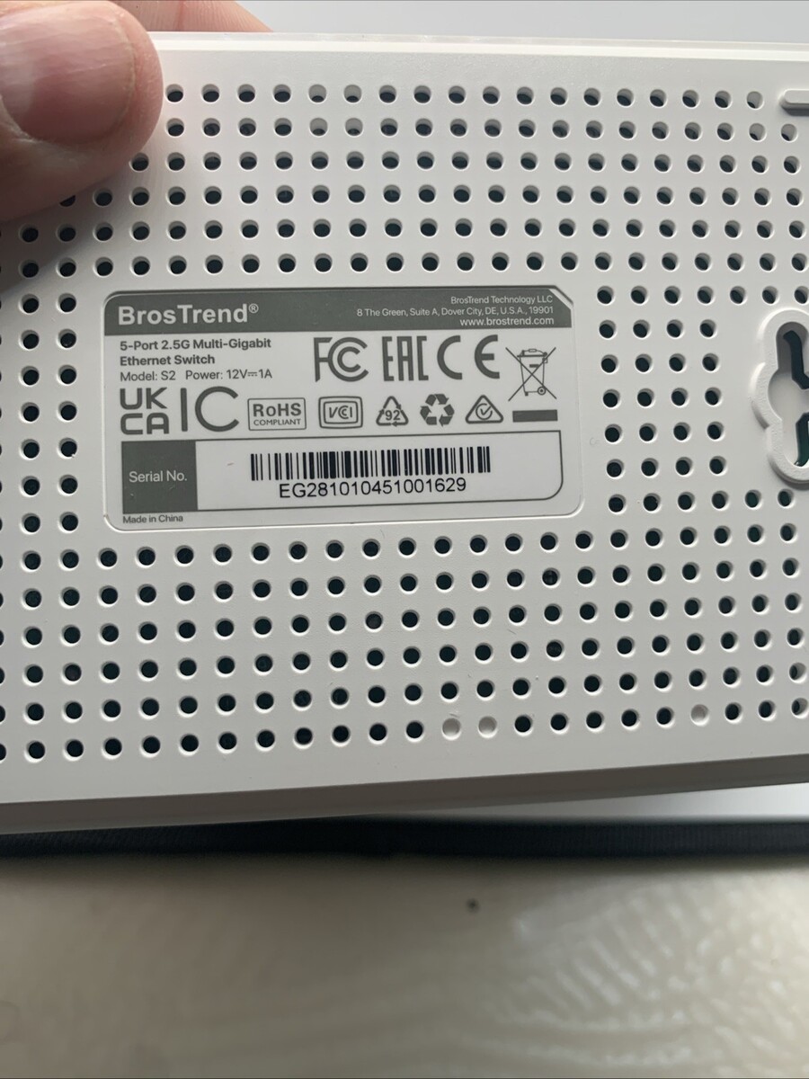 BrosTrend 5-Port 2.5G Muti-Gigabit Ethernet Switch Model No: S2 Plug&Play Silent