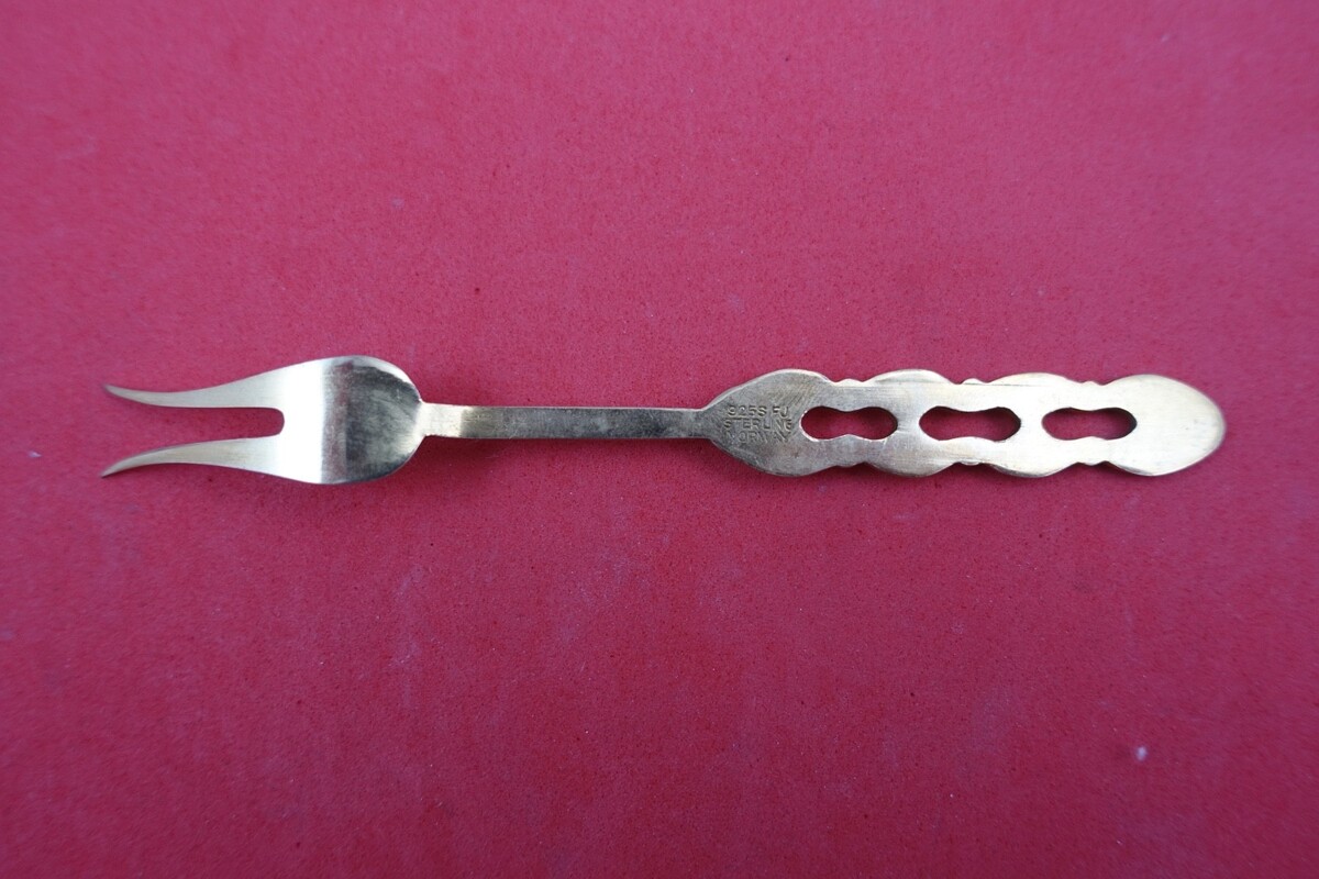 Norwegian sterling silver by Finn Jensen, Lemon / Strawberry Fork vermeil enameled white 4" . It is not monogrammed and is in excellent condition.