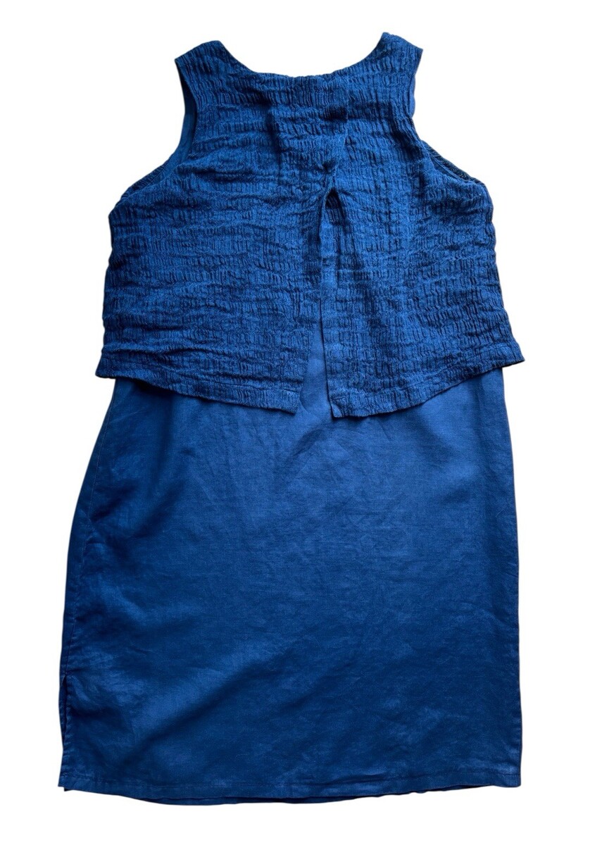 Pure J. Jill Blue Tank Shift 100% Linen Gauzy Sleeveless Sheath Dress 1X Cottage