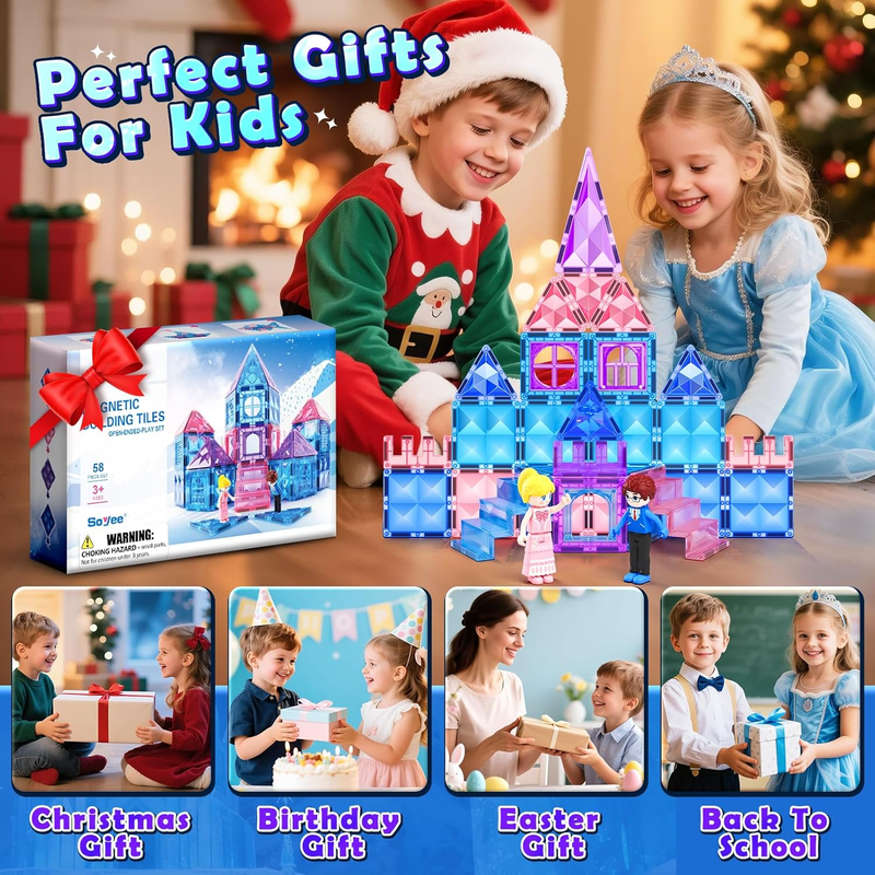 WORKS with OTHERS MAGNETIC BLOCKS - The Soyee Diamond Castle magnetic blocks set is compatible with other kits, and also a great pretend play, and princess toys for girls. And the girls toy does not only play at home, perfect for road trips or for playdates at the park
