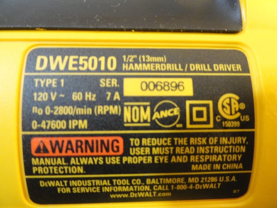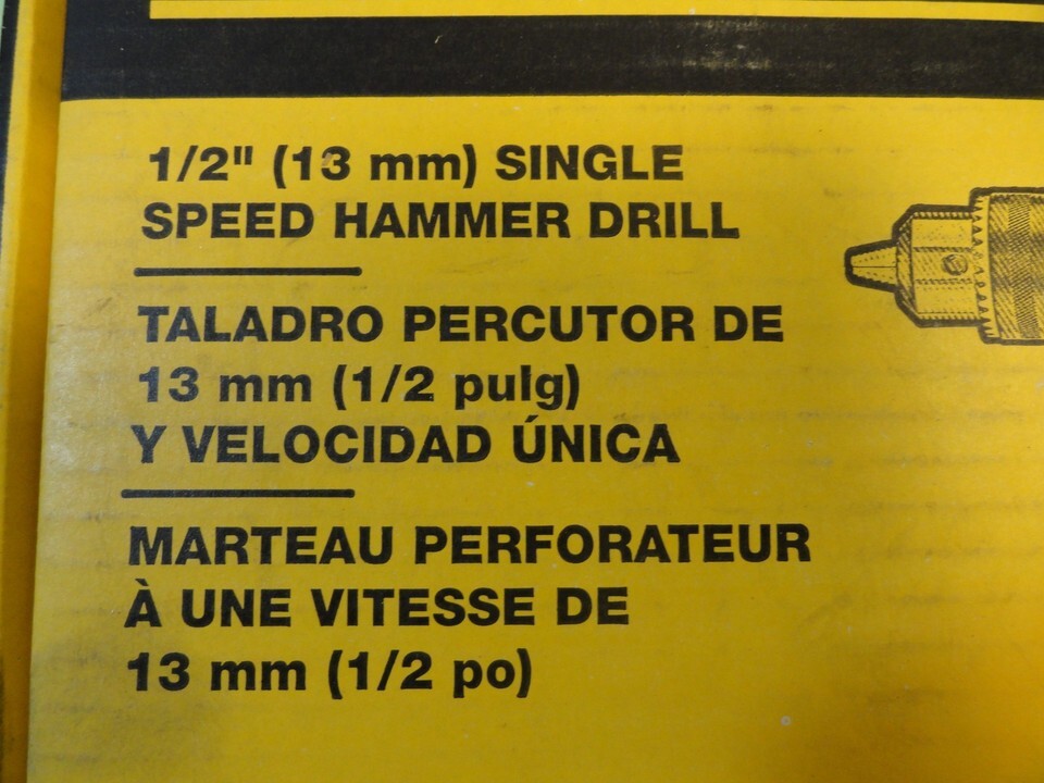 DeWalt DWE5010 Black Yellow 1/2 Inch 13mm 7 Amps Single Speed Hammer Drill