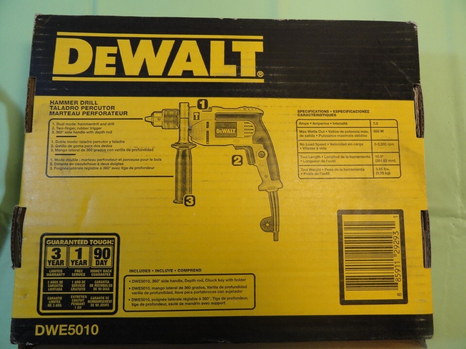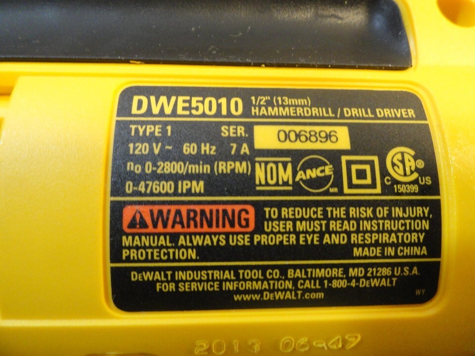 DEWALT SINGLE SPEED HAMMERDRILL DWE5010 7 AMPS 1/2 " (13MM) 550 MWO DUAL MODE