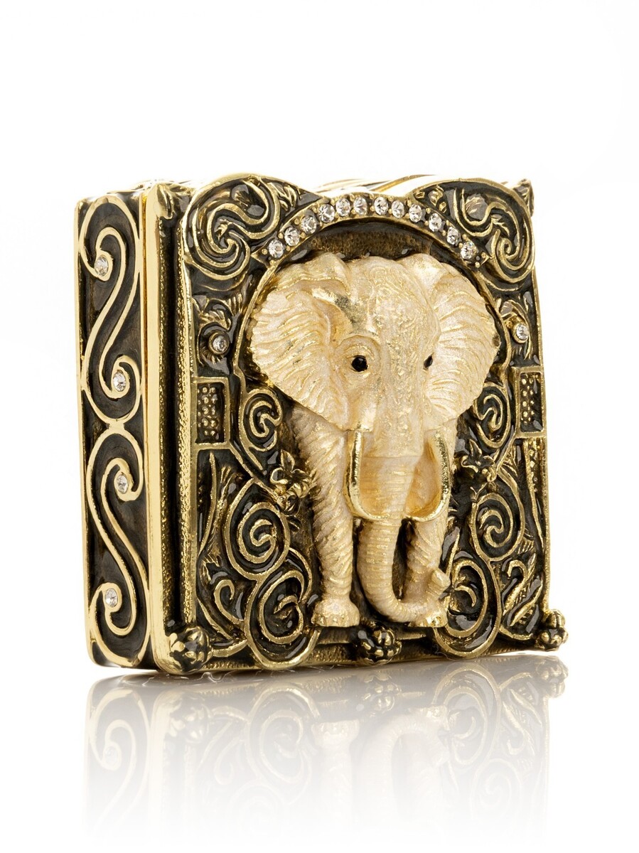 Keren Kopal Elephant hand made Trinket Box Decorated with Austrian Crystals