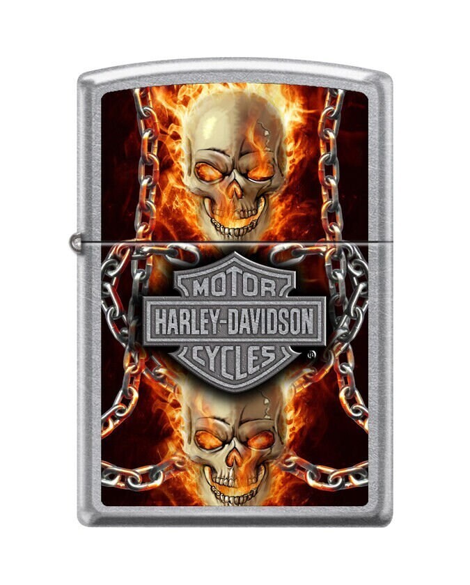 Stunning Harkey Davidson Skull Fire & Chains Zippo Lighter