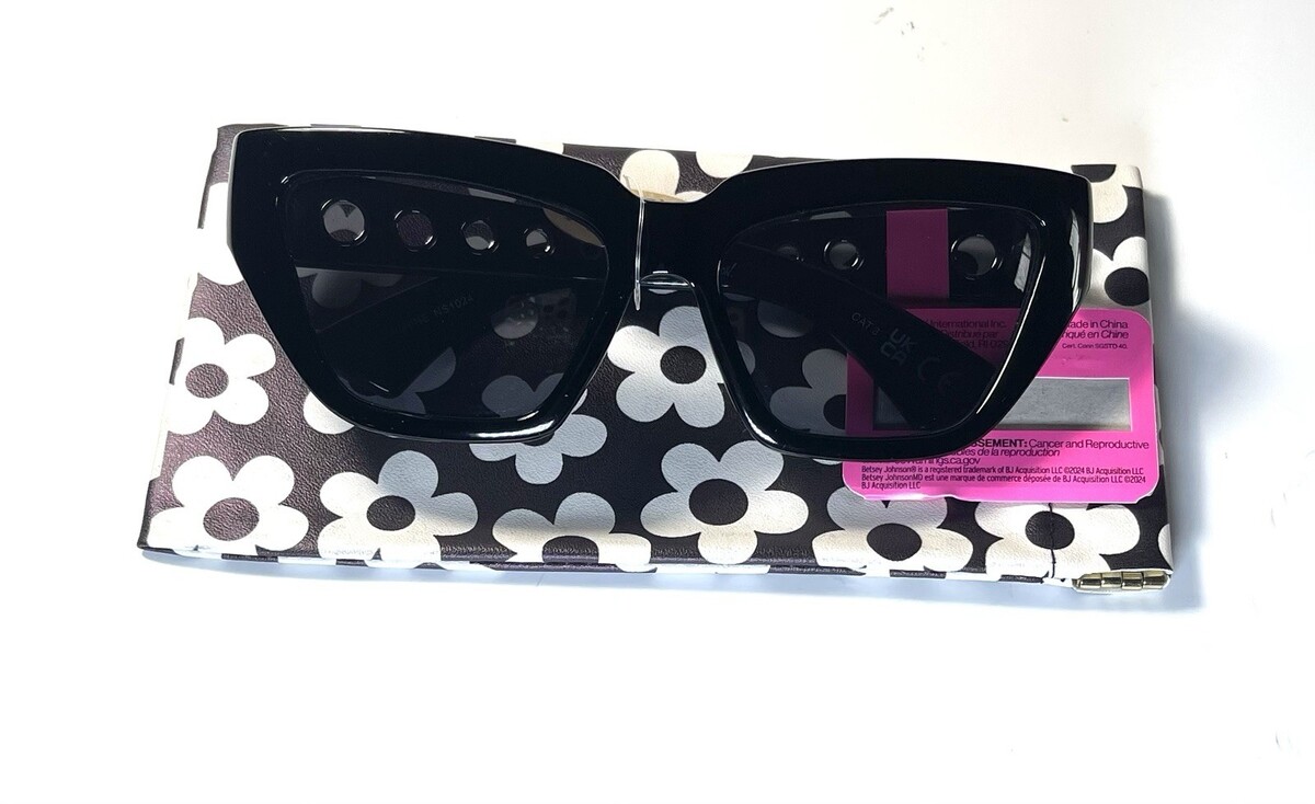 NEW BETSEY JOHNSON Black Silver Rivet BJ 25 82 Sunglasses + Case