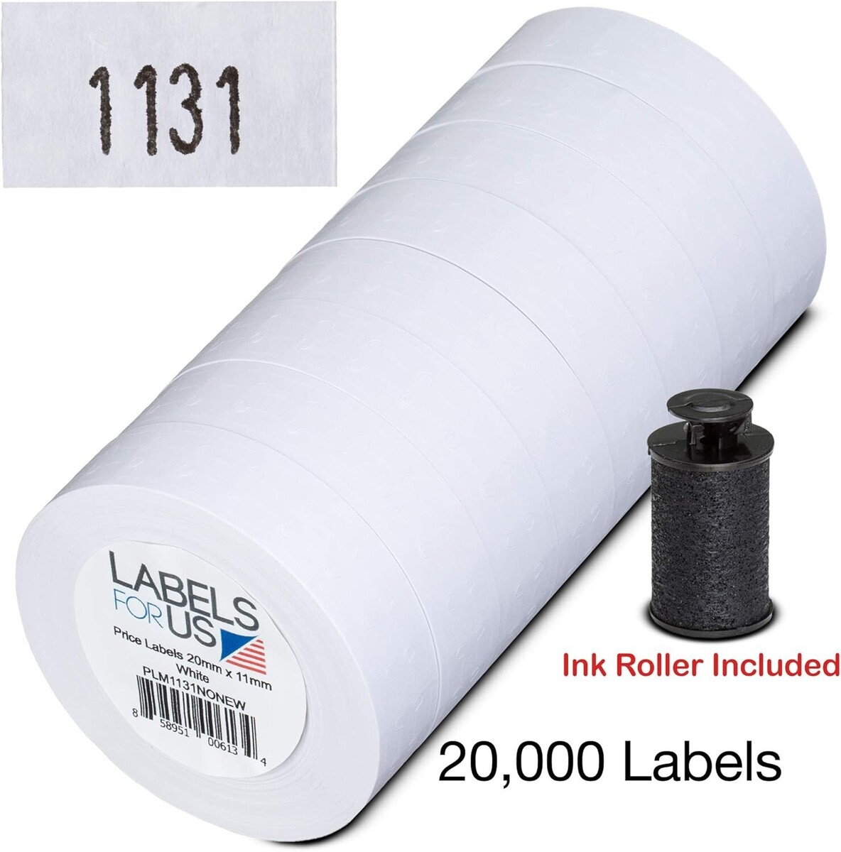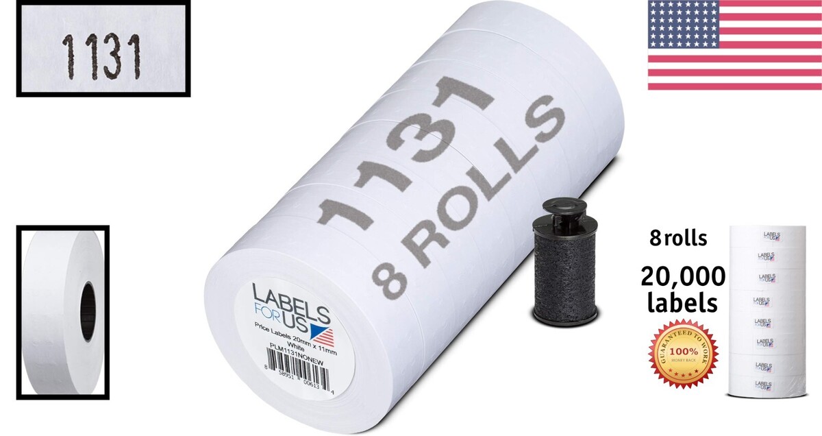 20,000 Price Labels for Monarch 1131 Gun - 8 Rolls, Ink Roller Included