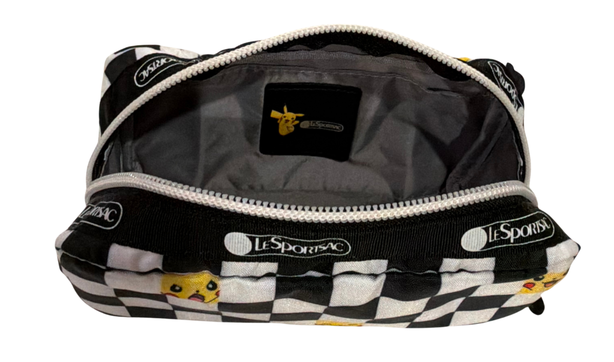 LeSportsac Pickachu Check Rectangular Cosmetic Bag, Style 6511/G688, Bold Black and White Check Graphic Design, Favorite Colorful Pickachu Character, Classic Nostalgic. Forever favorite 1st generation character in modern bold graphic design features black white check design with adorable Pickachu Poke Ball graphics abstractly arranged. Features interior sewn specialty collaboration logo, crisp white zipper with contrasting black zipper pull, grey interior lining. Collector?s bag, limited edition. Each bag features a different pattern layout, making each bag unique, not all designs/colors are featured on each bag. Ideal cosmetic bag size for travel everyday. Zipped main closure 3 inner pockets. Size - 3.5"H x 6.75"W x 2D".60 day returns. Free domestic shipping. International orders shipped through?s International Shipping Program.