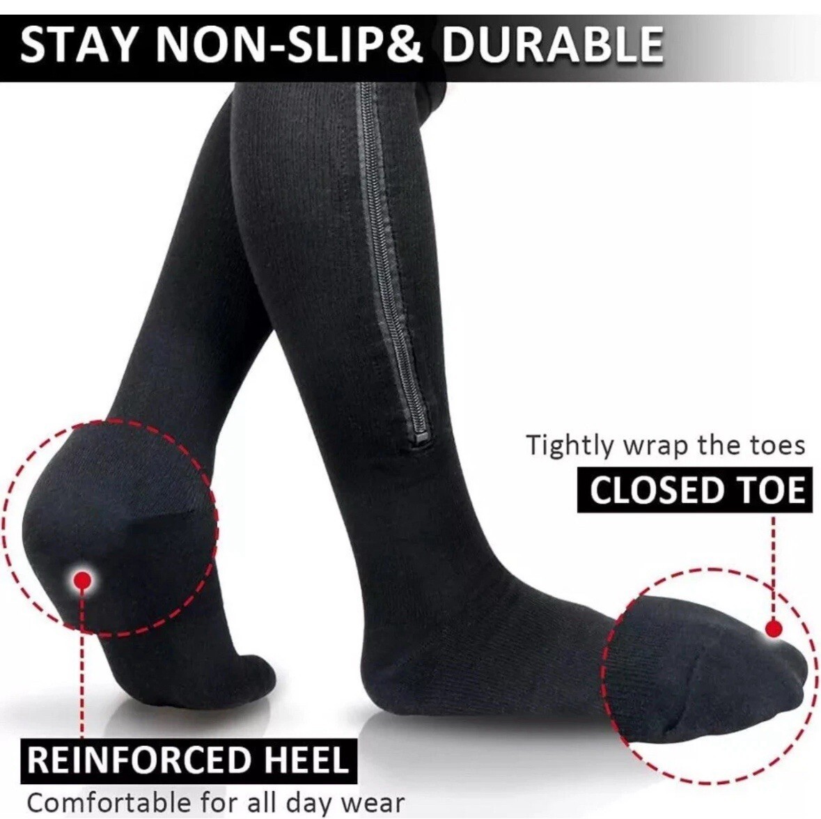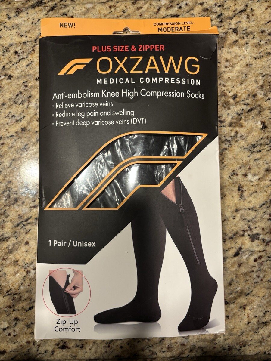 OXZAWG Medical Zipper Knee High Compression Socks size XL (1 Pair), Black NEW!