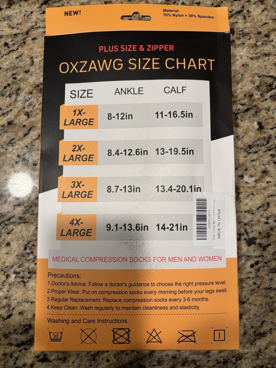 The OXZAWG Medical Zipper Knee High Compression Socks in size XL are a new and innovative product designed for both men and women. Made with a blend of nylon and spandex, these black compression socks provide added support and comfort throughout the day.