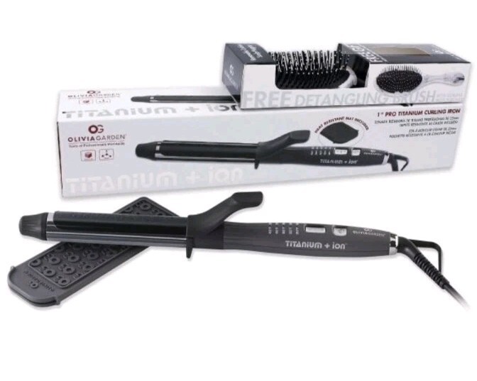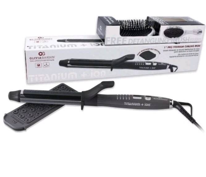Olivia Garden Titanium + Ion 1" Curling Iron.Olivia Garden Titanium + Ion Pro Titanium Curling Iron with FREE Detangling Brush Deal #TACU100DL1Menu