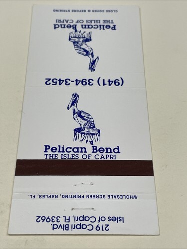 Matchbook Cover Pelican Bend The Isles Of Capri, FL. Unstruck gmg