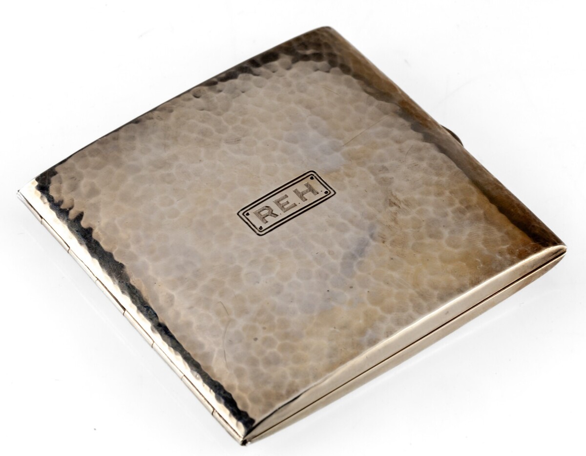 International Sterling Hammered Cigarette Case with Monogram Great Condition